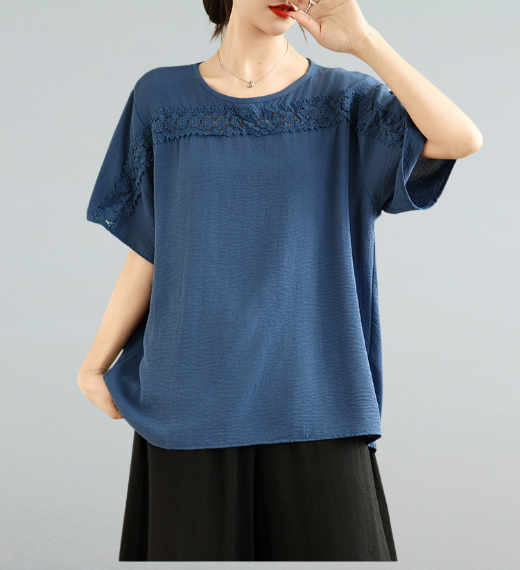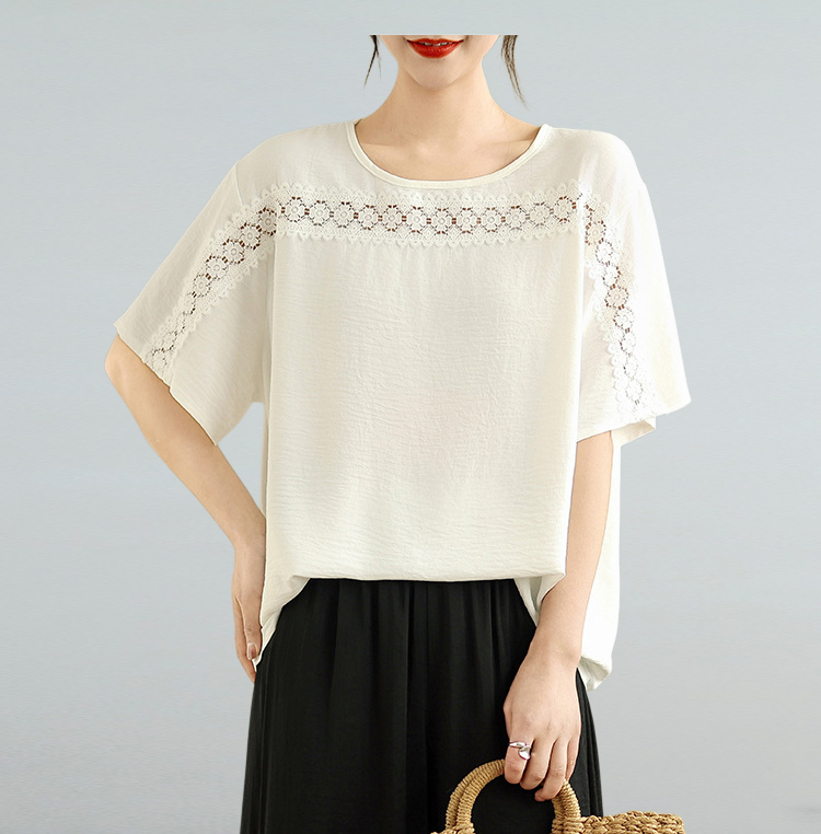 여름 신상 불규칙 레이스 접합 큰 사이즈 여성복 상의 뚱뚱 mm 나이를 줄여 배를 가리는 한국판 티셔츠